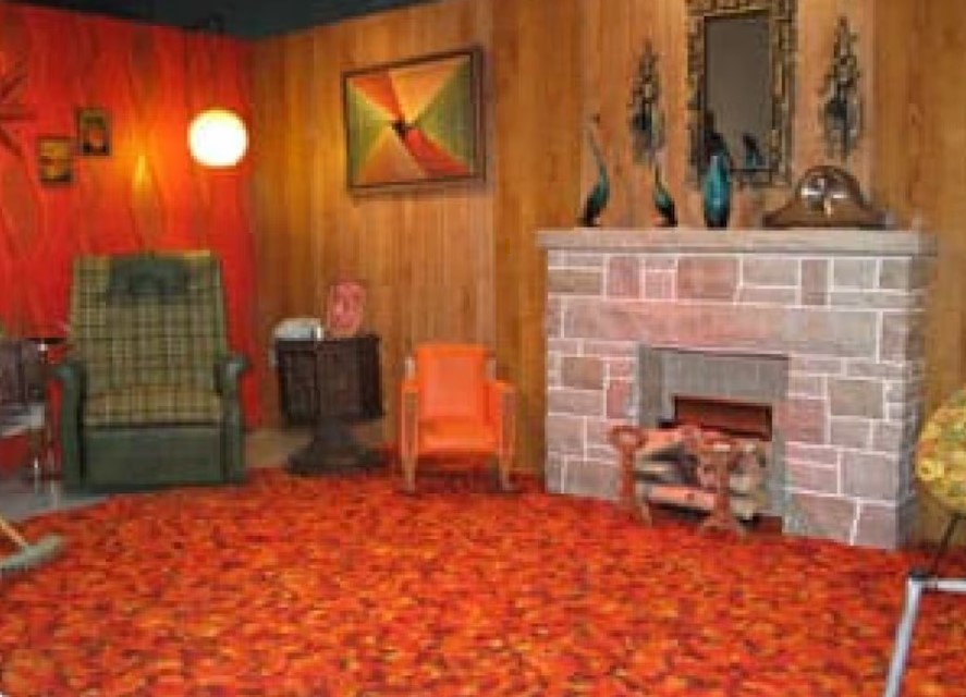 While becoming acquainted with the Capitol, Haymitch provides some telling descriptions. The newly provided tribute apartment, for instance, had a “strange, impersonal quality,” and was apparently “decorated by someone whose taste runs to fluffy things and burnt orange” (SOR 91). He is likely experiencing his first orange shag carpet if this pattern is upheld, perhaps the most synonymous symbol of 1970s decor. After explaining how the apartment was an upgrade from the previous tribute barracks, Mags directs Haymitch into a room with “two beds covered with fuzzy orange spreads,” with pajamas included (92). Upon arrival, a “disgruntled” peacekeeper had led them “into a lobby with fake wood paneling and into an elevator that smells like old socks and cheap perfume” (86). One more observation comes from Haymitch when Effie’s makeup box spills on the floor, as “tubes of color roll across the burnt-orange carpet.” (174)